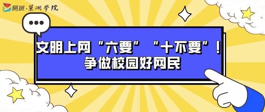 • 文明上網(wǎng)“六要”“十不要”!爭(zhēng)做校園好網(wǎng)民